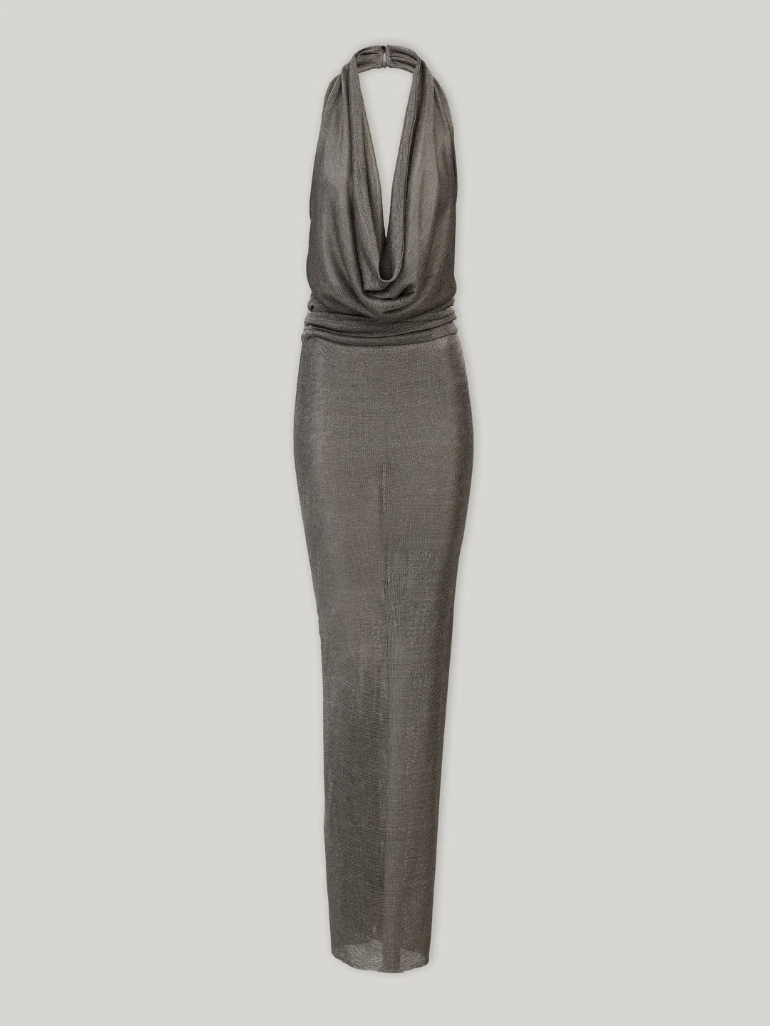 Effortlessly elegant, this draped halter maxi dress is designed to flatter with fluid movement and a sculpted silhouette. Crafted in a soft, stretch fabric, it features a plunging cowl neckline and subtle ruching through the waist that enhances the form while maintaining a relaxed, modern feel. The elongated maxi length creates a clean, uninterrupted line for a timeless yet contemporary look.