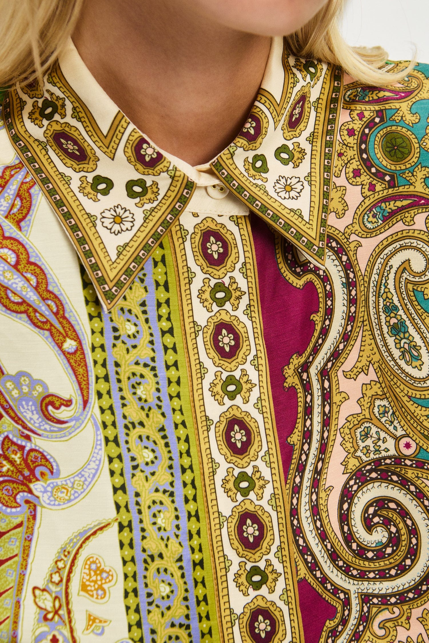 Crafted with a nod to retro elegance, the Clemenza Spliced mini dress blends artisanal prints with a playful, feminine silhouette. The structured collar and flared sleeves bring a tailored edge to its breezy design. A self-tie belt cinches the waist for a flattering finish.