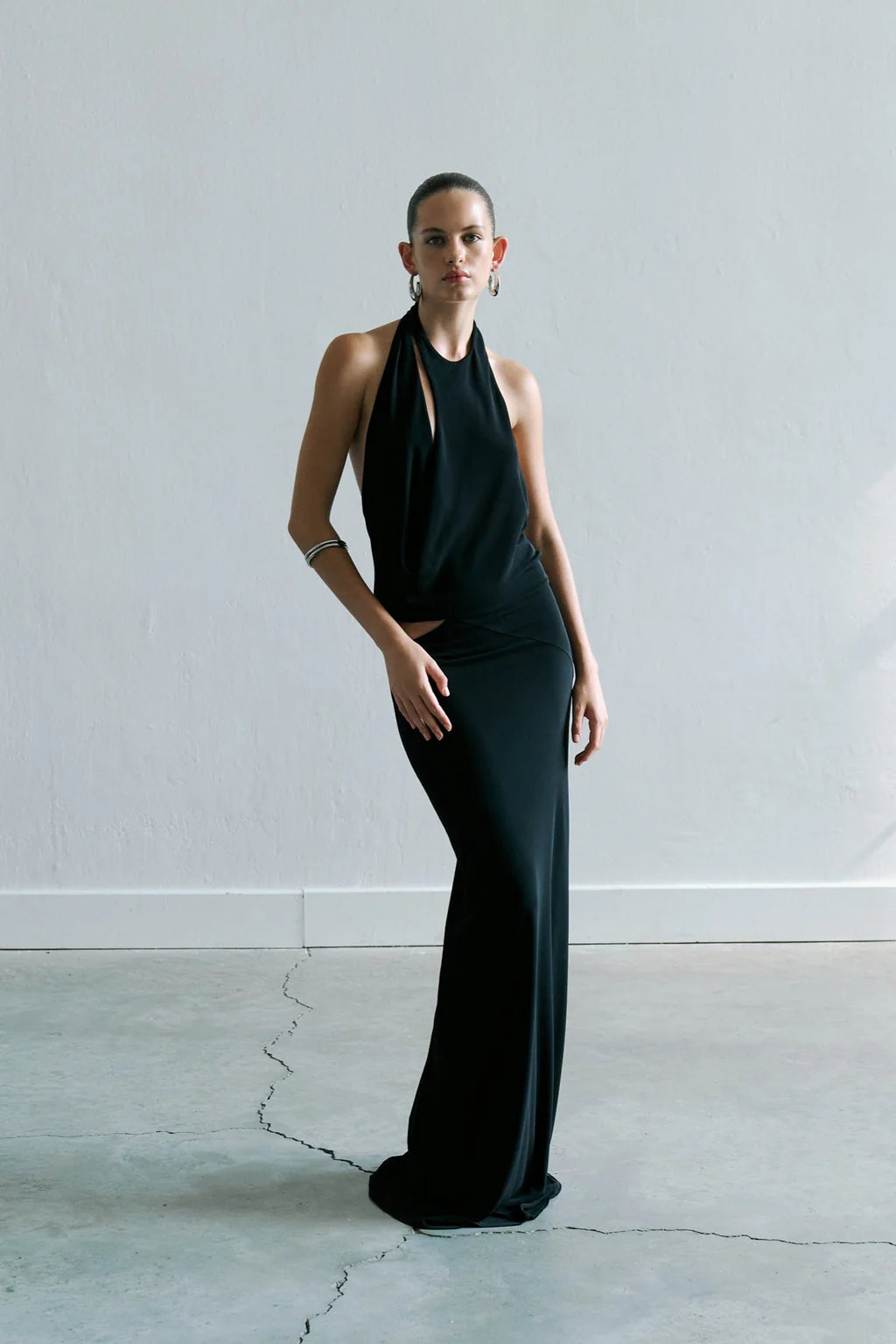 - Crowl Neck Cut Out Detailed Maxi Jersey Dress