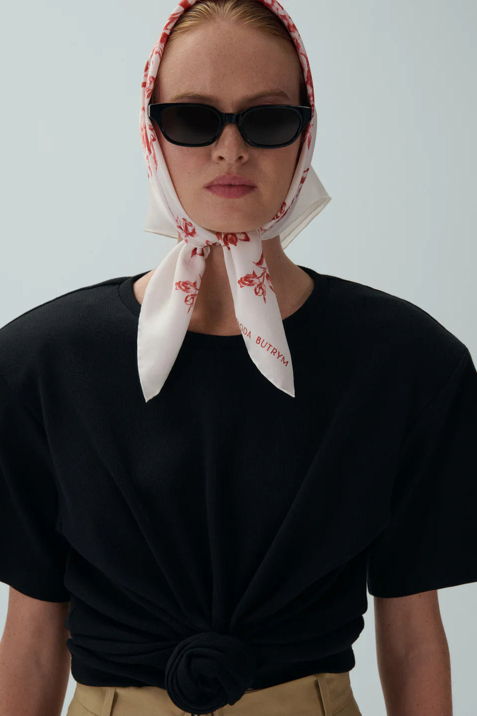 Magda's classic ribbed t-shirt features a knotted detail at the front and detachable shoulder pads.