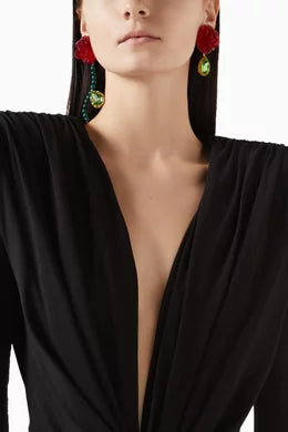 Magda Butrym's Rose Crystal Dangle Drop Earrings bring a touch of romance to your accessory collection. Crafted in sterling silver and resin, these earrings feature delicate resin roses and drop crystals that catch the light with every movement. Let them shine with swept-back hair and a minimalist outfit.